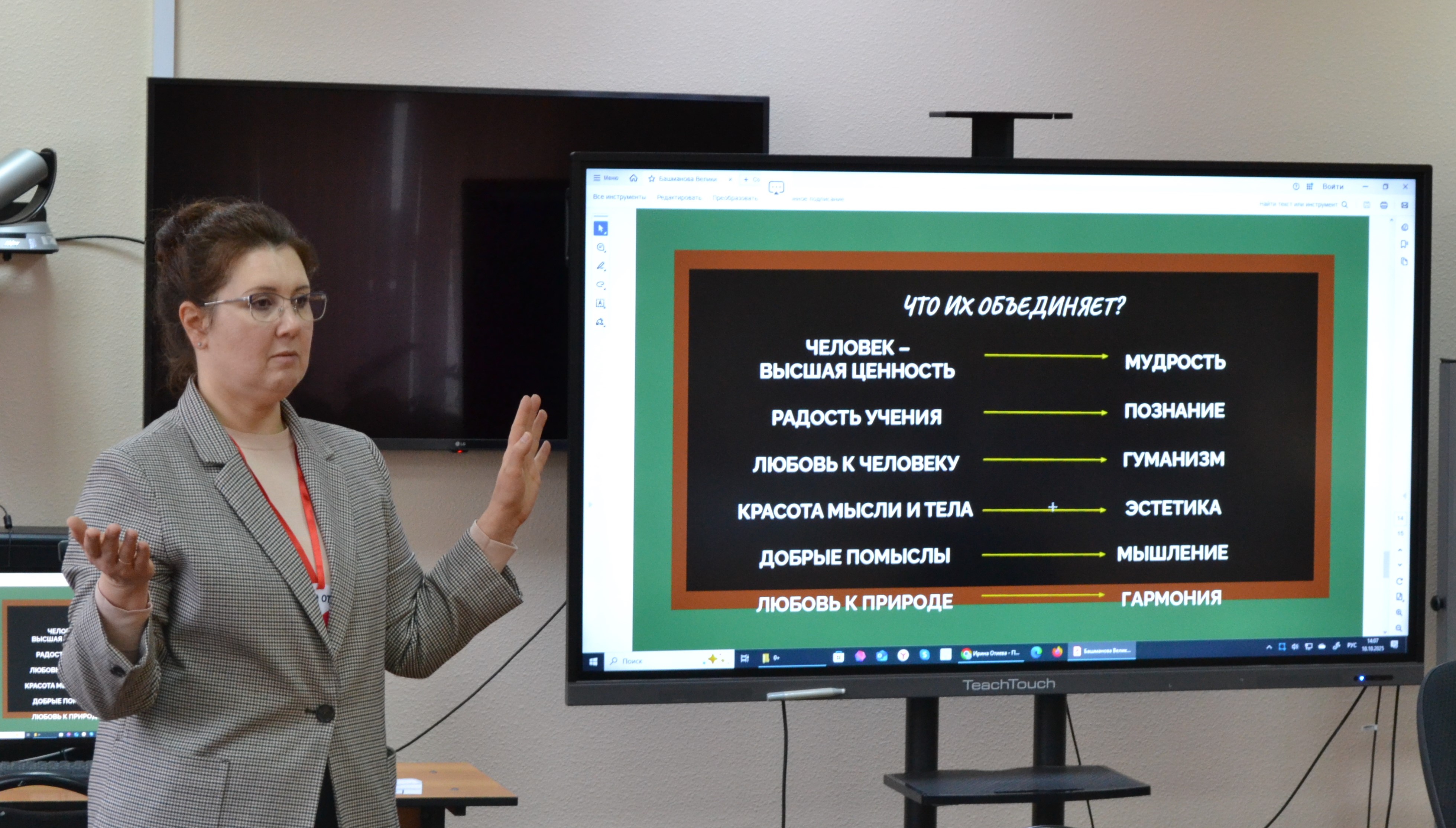 — занятие по педагогике «Великие педагоги прошлого» с проведением профессиональных проб и выполнением интерактивных заданий. В рамках данного мероприятия обучающиеся познакомились с творчеством Витторино да Фильтре, К.Д. Ушинского, Р. Тагора; узнали, в каком известном советском фильме использованы стихи одного из выдающихся педагогов; совершили путешествие по педагогической карте мира;